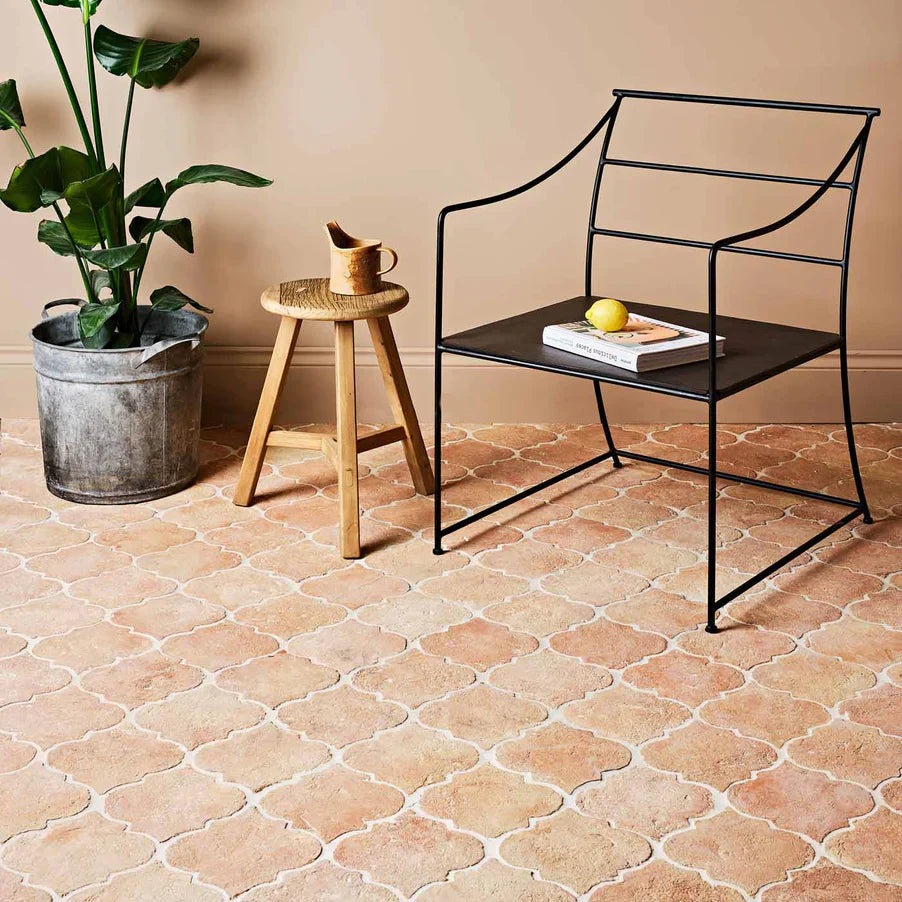 When selecting terracotta tiles, there are a few things you need to consider like what size and shape will go with your room dimensions and decor. Luckily enough, terracotta tiles are available in various shapes and sizes, ranging from elegant arabesque tile patterns to geometric hexagonal tiles. Meaning you have plenty to play with to achieve your desired look.