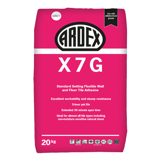 View full detailsARDEX X7G FLEXIBLE STANDARD SET GREY TILE ADHESIVE For tiling onto reinforced floors and electrical under floor heating you need FLEXIBLE ADHESIVE....
