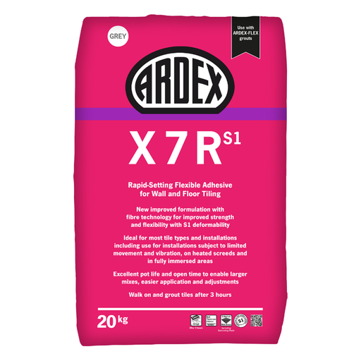 ARDEX X7R S1 FLEXIBLE RAPID SET GREY TILE ADHESIVE For tiling onto reinforced floors and electrical under floor heating you need FLEXIBLE ADHESIVE....