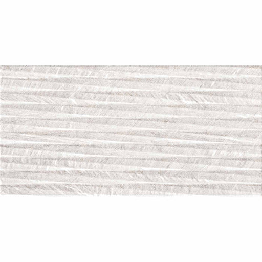 Roma White Lines Decor wall tile 25x50cm. A ceramic tile with a linear matt finish with a matching plain tile. Through modern manufacturing and ink...