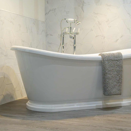 Our selection covers both plain and patterned white bathroom tiles, as well sizes from small to extra large and shapes including hexagonal and rectangle.