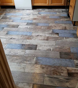 Rustic Blue Wood is a multi print tile with 21 different print faces, each with a different wood effect and colour available, to give a rustic worn distress look and mimic a reclaimed wood effect for any floor or wall.