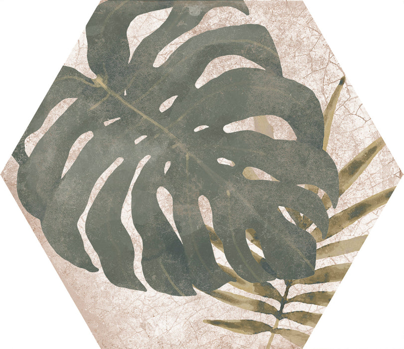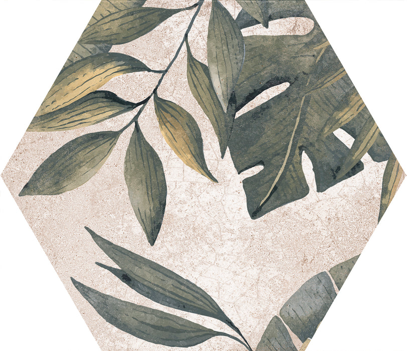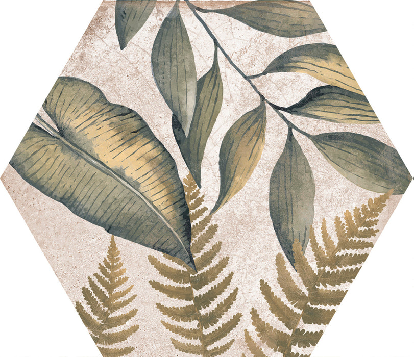 Botanical Pattern Hexagon tile 22.5x25.9cm