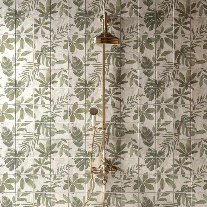 Jungle Grove is a riot of abundant jungle foliage. These tiles are part of our Décor range, a considered and stylish collection of small format decorative tiles that embraces the resurgence of patterned surfaces within the home.