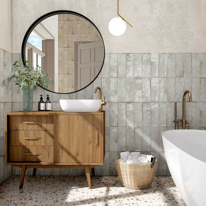 The Luna Grey is a rustic looking semi-gloss ceramic brick tile. Designed to look handmade with bumpy finish. The Luna range gives a stunning worn look and feel to bathrooms and kitchens.