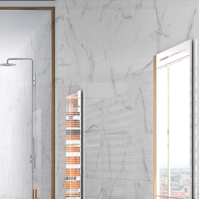 Shine White is a marble effect tile with print which is extremely popular for bathrooms to create a spa like feel.